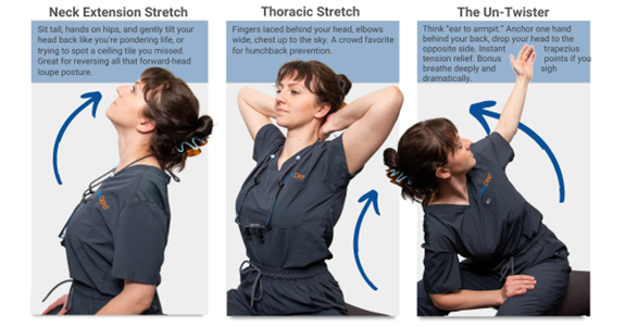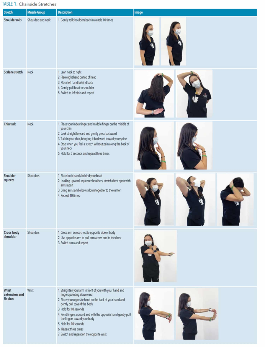 - https://www.lumadent.com/blogs/blog/the-ergonomic-stretch-guide-for-dental-professionals