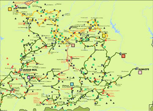 Presencia humana ancestral, aguas termales, volcanes, bosque mediterráneo y dehesas junto a grandes extensiones de vid, olivo y cereal, castillos y fortalezas que son referentes de nuestra historia, conforman este tramo, también lleno de pasajes cervantinos.