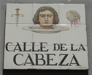 Calle Cabeza. Cuenta la leyenda que esta calle lleva su nombre debido a un asesinato que ocurrió en ella. Un rico señor fue asesinado por su criado portugués, que huyó con la fortuna robada a su tierra. Años después volvió a Madrid el criado, y se le antojó una cabeza de carnero; al comprarla se la envolvieron y de esta envoltura no dejaba de manar sangre. La gente alarmada por el reguero, avisó a los alguaciles que se llevaron la sorpresa de encontrar en el envoltorio la cabeza del señor asesinado. Este hecho hizo que se le detuviese y ajusticiase. En la esquina de la Calle Cabeza con San Pedro Martir existe un mural con azulejos que nos recuerda que en ese edificio vivió Pablo Picasso.