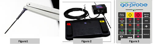 Para rellenar el periodontograma, lo podremos hacer por medio del pedal, el cual permite aceptar, borrar y utilizar el programa sin necesidad de tener el teclado o el ratón del ordenador cerca. (Ver fig. B.)