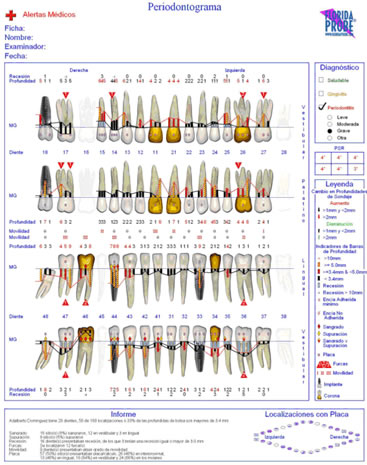 Una vez terminado el sondaje completo podremos visualizar junto al paciente el periodontograma pudiéndole explicar cuál es el estado actual de su boca y qué tratamientos serían necesarios para mejorar
