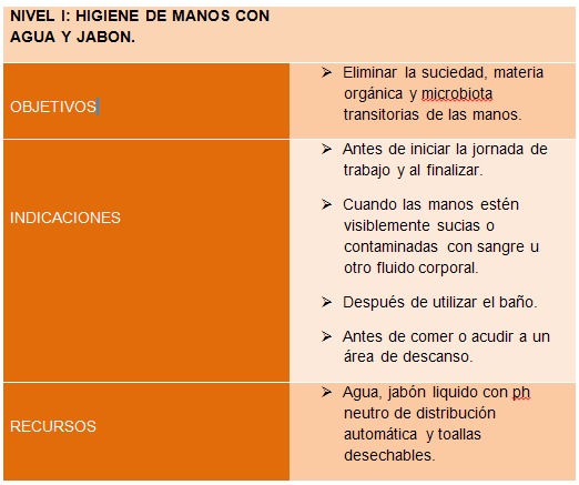 - Nivel I: Ordinario. Lavado simple de manos.