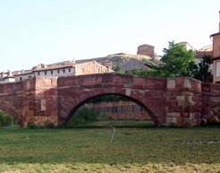 Puente Románico, salvando el rio Gallo, está formado por tres arcos escarzanos realizados en piedra sillar arenisca típica de la zona. Siglos XII-XIII