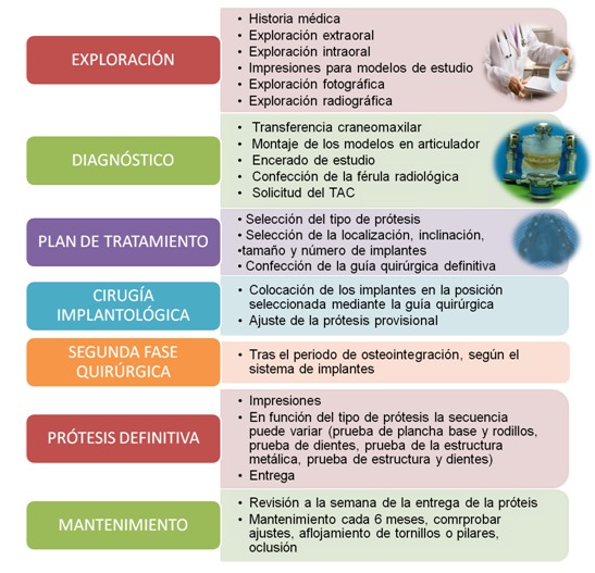 Para realizar un correcto diagnóstico y planificación protésica del paciente, tras la exploración tanto clínica como radiológica es necesario seguir unas fases en el estudio protésico para conseguir el éxito final del tratamiento.