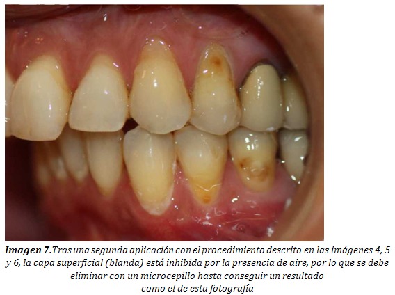 Con ello, la paciente obtiene una solución mínimamente invasiva a su problema, y queda informada de la necesidad de repetir la aplicación del sellador en un plazo que varía en función del juicio del clínico para cada caso individual, a partir de la abrasión prevista y la necesidad de alivio de la hipersensibilidad cervical en el futuro.