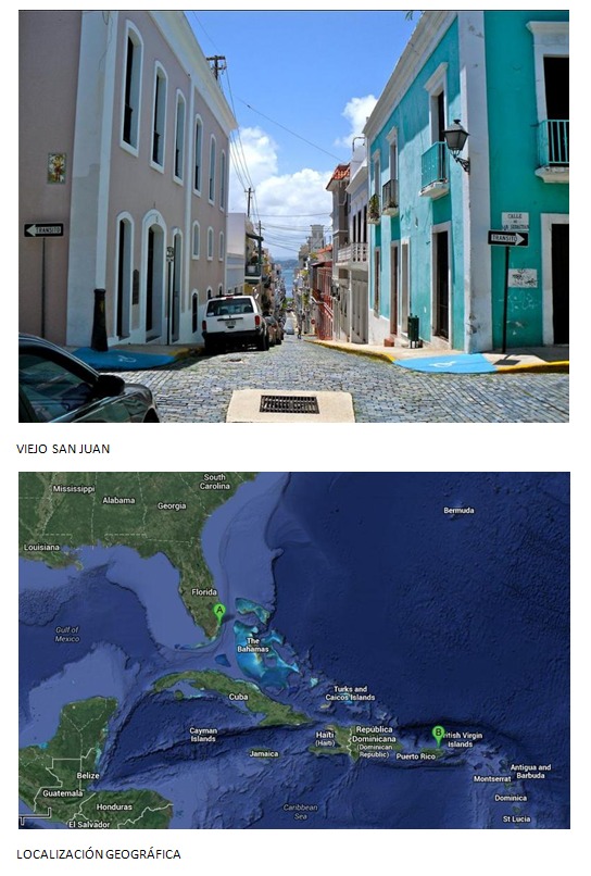 Puerto Rico es un archipiélago situado al noreste del Mar Caribe, que se compone de una isla principal y una serie de cayos e islas pequeñas que la rodean, tales como Culebra, Culebrita, Vieques y Mona, entre otras. Su capital, San Juan, está situada al noreste de dicha isla principal y a unos 1700kms de distancia de la costa sur de Florida (Estados Unidos).