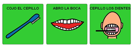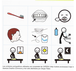 Es importante diseñar un buen programa de higiene oral adaptado a las características concretas del paciente, teniendo en cuenta el nivel de lenguaje y la comprensión del mismo. En ocasiones, se tendrán que utilizar pictogramas acompañados de frases sencillas que expliquen qué hacer y en qué momentos (Figura 2).