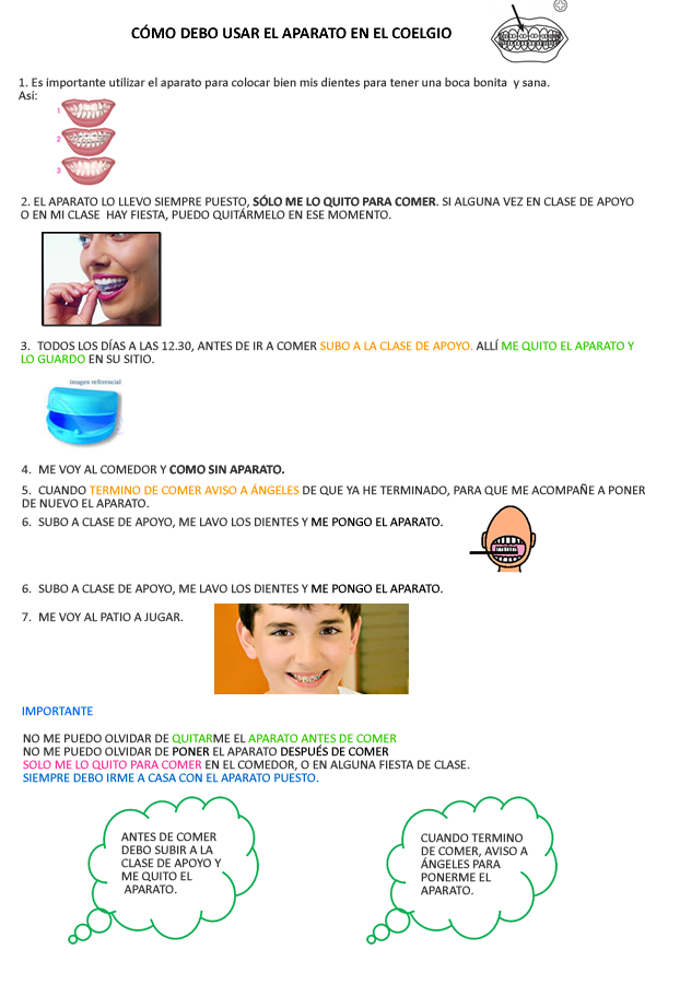 Figura 4: panel elaborado por Beatriz Ruiz para un alumno con T.E.A. que ha de llevar aparato en el centro escolar.