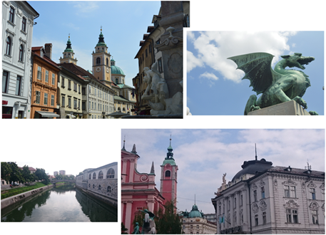 Su casco antiguo atravesado por el río Ljubljanica sobre el que cruzan los puentes de Los Dragones o Los Tres Puentes tiene el aspecto de pequeña metrópoli del siglo XVIII-XIX. Desde lo alto es vigilado por su Castillo, completamente remodelado y al que se accede por un funicular para disfrutar de la visita de toda la ciudad. Aquí en el Castillo se sitúa el origen de la ciudad, desde la prehistoria y luego como fundación romana. Fuimos agraciados por ser un grupo con la proyección de la historia de la ciudad en español. Nos llevamos algún susto por el montaje de la antigua cárcel y disfrutamos de la vista de la ciudad y su magnífico entorno boscoso desde las murallas.